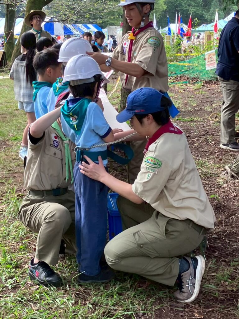 私たちボーイスカウト相模原第7団は、相模原市を拠点に、地域に根ざした青少年育成活動を行っています。今年は、相模原市主催の「親子ふれあい祭り」に参加し、毎年恒例となっているボーイスカウト運営のターザンロープを実施しました。このターザンロープは、設計から準備、設営、当日の運営や安全管理まで、すべてボーイスカウトの指導者とスカウトが力を合わせて作り上げています。会場では、多くの子どもたちが元気いっぱいにロープに挑戦し、笑顔あふれる時間となりました。