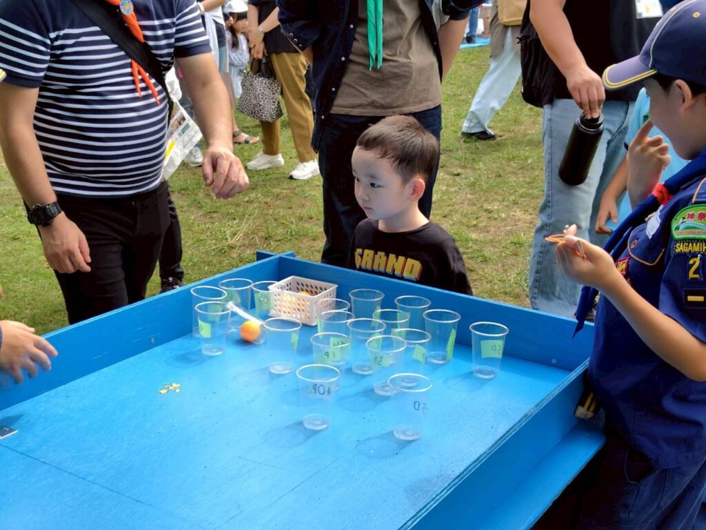 また、ボーイスカウトの中学生年代のスカウトが中心となって運営する、地域のこども向けゲームコーナーにも参加しました。遊びの内容を考え、年齢に合わせて工夫しながら運営する経験は、学校ではなかなか味わえない貴重な学びです。学外の子どもたちや初めて出会う友達と遊ぶことで、自然とコミュニケーションが生まれ、子どもたちの世界が広がっていきます。