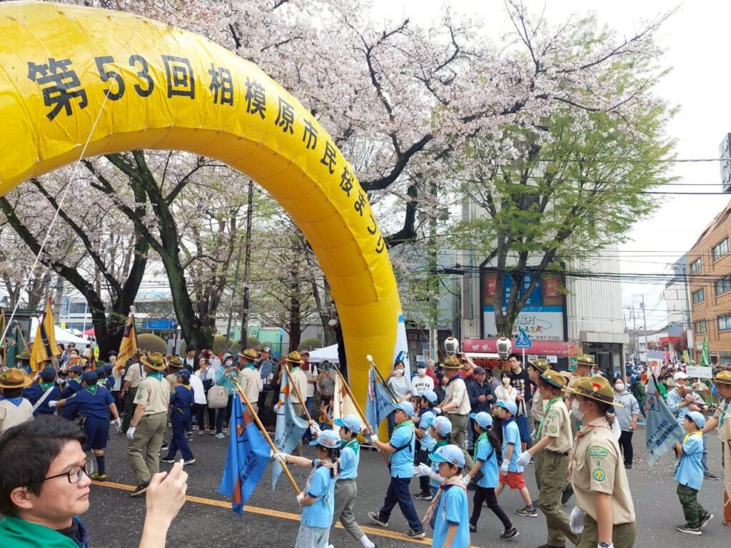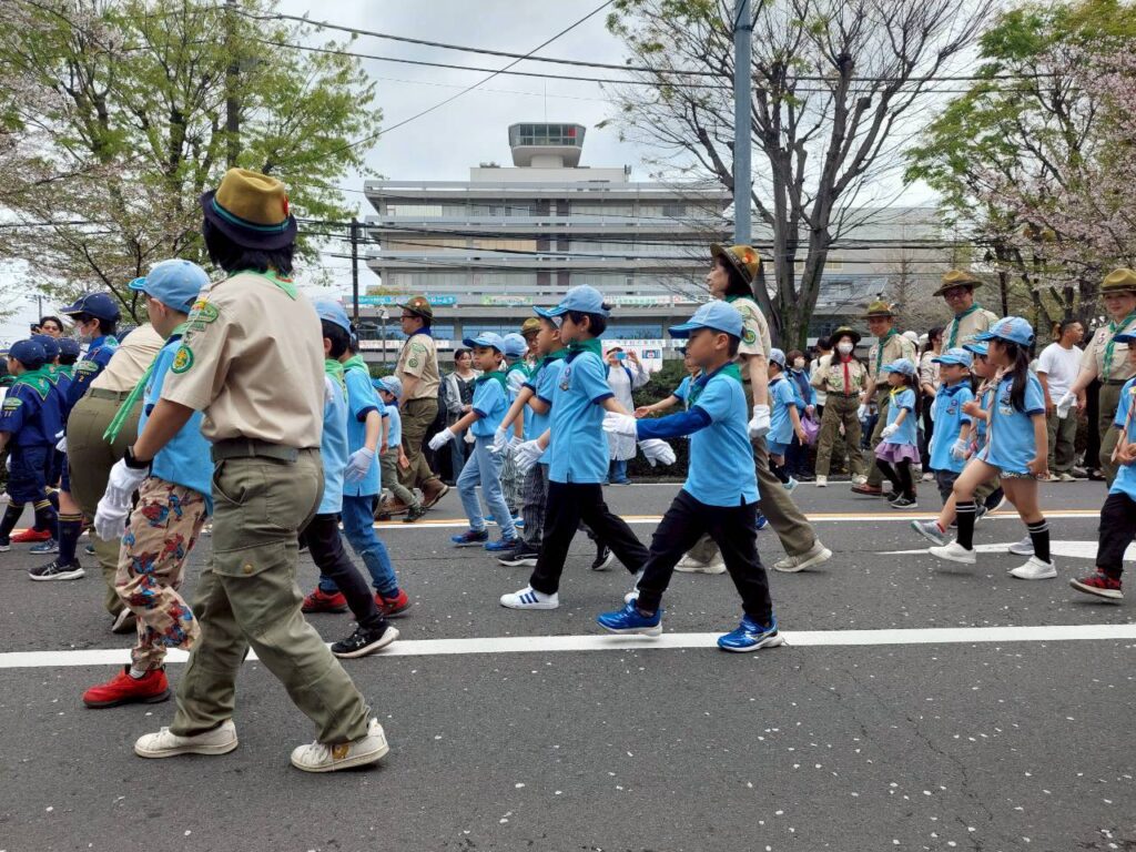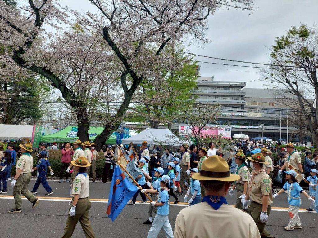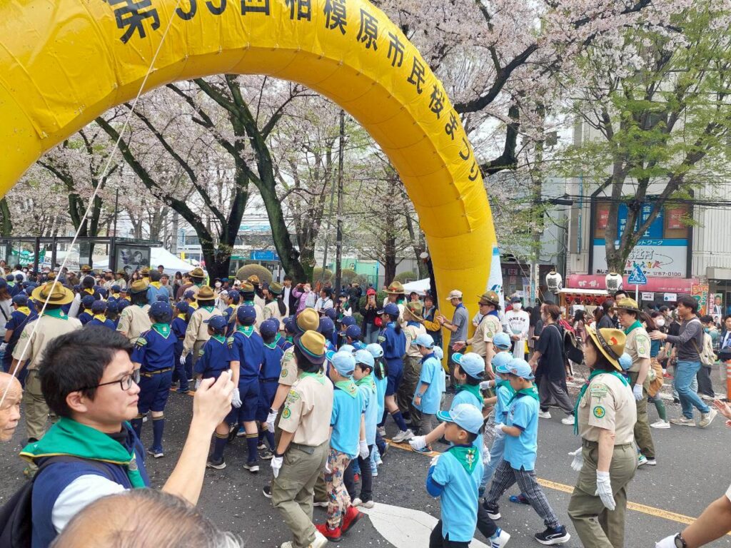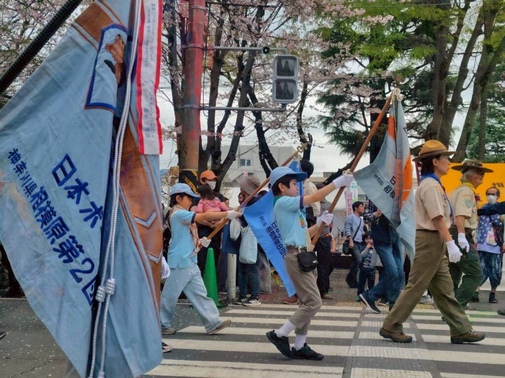 相模原の春を彩る恒例行事「相模原市さくら祭り」に、今年もボーイスカウトとして参加しました。地域の皆さまへの感謝の気持ちを胸に、スカウトたちは隊旗を掲げて堂々と行進。地域社会とのつながりを深めるとともに、協調性や誇りを育む貴重な機会となりました。