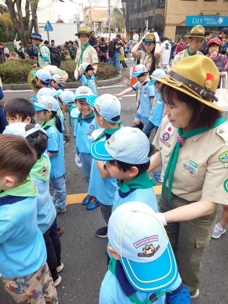 低年齢のビーバー隊は、一般参加者向けのゲームコーナーで来場者とふれあい、笑顔あふれる交流を通じて地域の温かさを体感しました。ボーイ隊やベンチャー隊のスカウトは、パレードでのプラカード持ちや沿道警備を担当し、安全で円滑な運営に貢献しました。さらに、行事の終了後には沿道の清掃活動を行い、地域への感謝の気持ちを行動で示しました。
